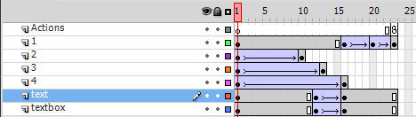 After adding tweening to all the four layers , the timeline should look as in Figure below.